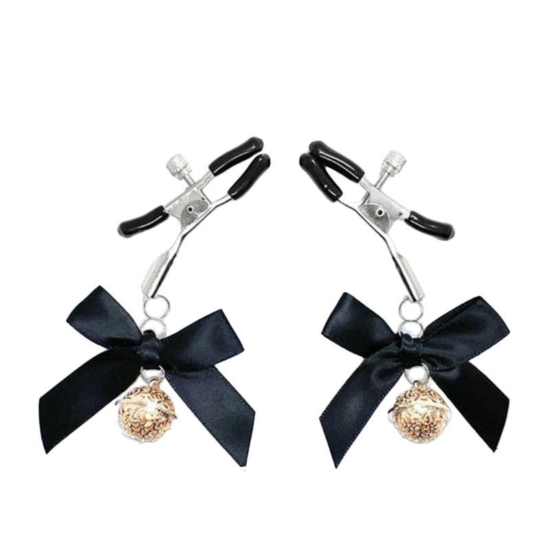 Elegant Bow Nipple Clamp With Rose Gold Bells (Long)