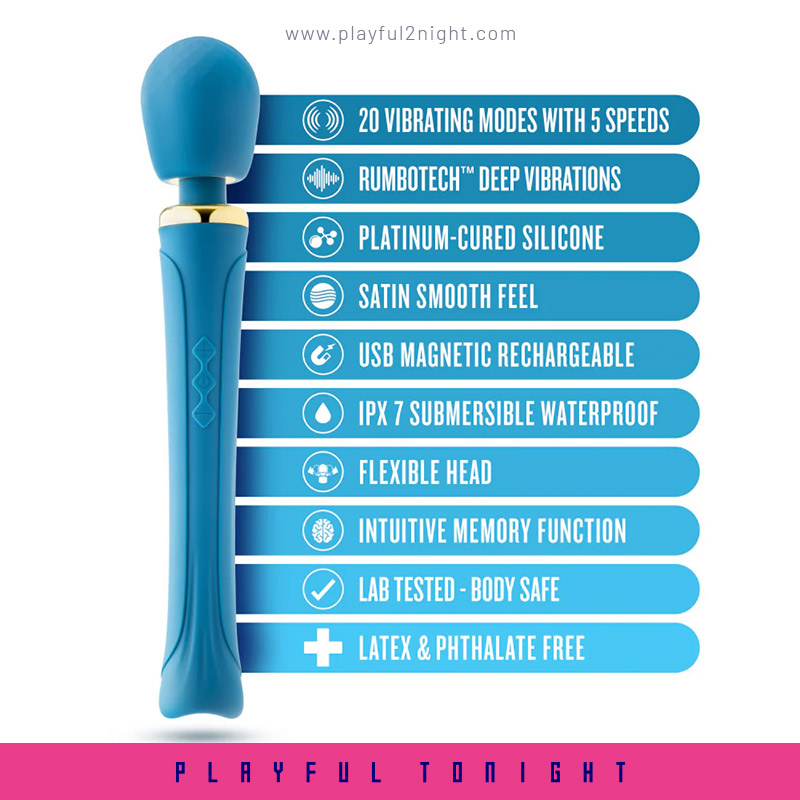 Meet Dianna, a regal massaging wand fit for queens. Crafted with elegance and sophistication, Dianna is designed to provide a luxurious and pleasurable experience for you. With 20 exquisite vibrating patterns and 5 speeds each, Dianna’s majestic RumboTech™ power will resonate effortlessly soothing your muscles and igniting waves of pleasure. Indulge in Dianna’s platinum-cured silicone, which caresses your skin with a satin smoothness that rivals the finest silks. Her flexible head allows you to find the perfect position to apply just the right amount of pressure. With her magnetic USB charging, Dianna is IPX7 waterproof, ready to accompany you in the shower or bath. Navigate with responsive 3 button controls, cycling through patterns and speeds. Intuitive memory feature allows you to effortlessly return to pleasure. Elevate your self-care routine and embrace the regal power of Dianna, the personal massager crafted for queens of all body types.