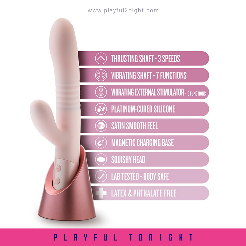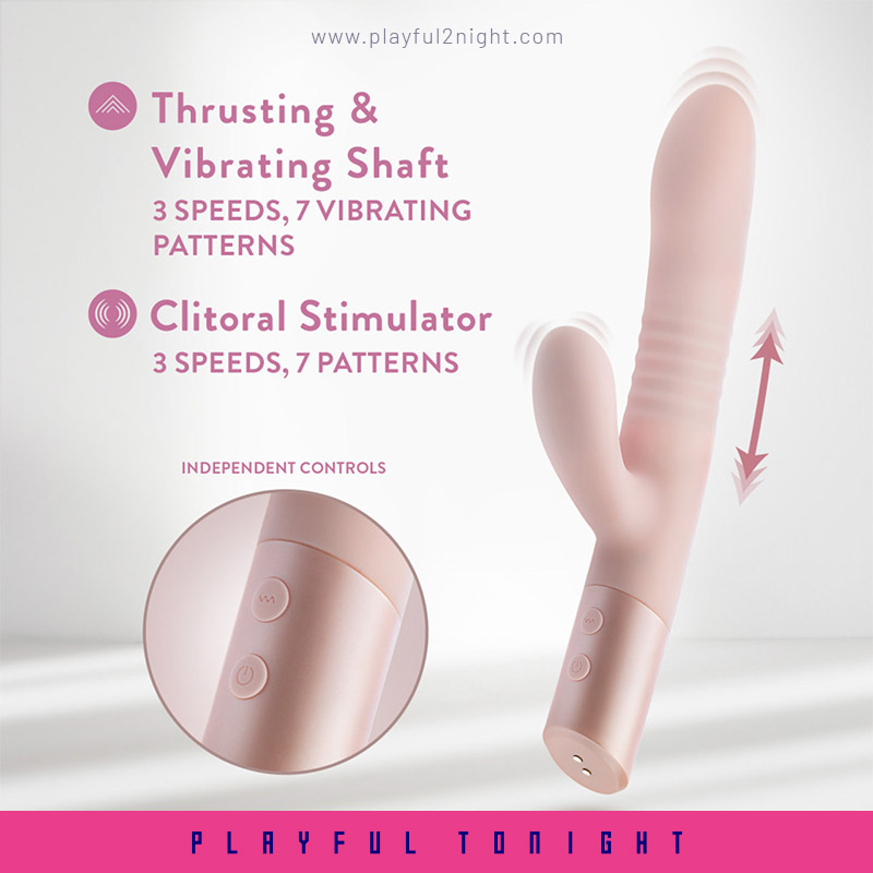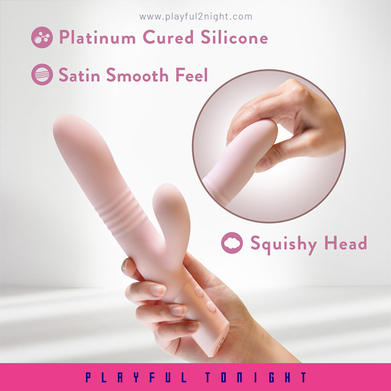 Fraya is here to remind you, You’re A Precious Gift! With its graceful design, this spirited rabbit is thoughtfully crafted with dual vibration points, providing a bundle of passionate pleasure for your G-spot & clitoris. Its rounded head is shaped for comfortable insertion, and its thrusting & vibrating shaft goes deeper to give you more pleasure than ever before. Choose from 10 lavish thrusting vibration modes, including 3 speeds & 7 percussive patterns. The independently controlled clitoral stimulator adds 10 additional vibrations, cuddling your clitoris with delicately intimate sensations. Premium platinum-cured silicone provides a wonderfully satin smooth feel against your skin. Fraya is ready for the spotlight, with a luxurious rechargeable standing base that elegantly displays the product, while USB magnetic charging powers it up. Embrace your inner beauty confidently with Fraya, knowing that you are a precious gift to the world!