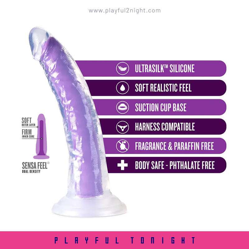 Neo Elite – Glow in the Dark Neon Purple – Light 7 inch Silicone Dual Density Dildo will bring new light to your bedroom! Neo Elite Glow in the Dark dildos feature SENSA FEEL® dual density technology: a see-through layer over a firm core that shines in the darkness. The two-layer construction creates an ultra-realistic feel soft yet firm.