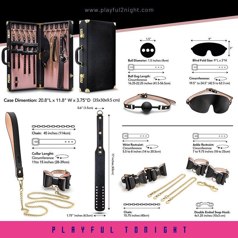 Unlock your fantasies with this all-in-one Temptasia BDSM Kit — thoughtfully designed for both beginners and intermediate players. Housed in a sleek, durable vegan leather case with a sturdy handle and functional metal combination locks, this kit ensures your privacy whether you’re at home or on the go.