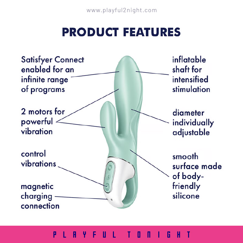 The Air Pump Bunny 5 Connect App is incredibly versatile: let yourself be pampered with vibrations from two powerful motors and sensually filled with the inflatable tip of the shaft. For exclusive experiences, control the vibrator with the Satisfyer Connect app.