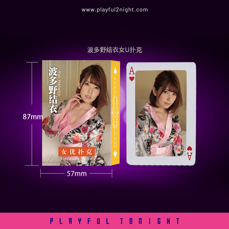- 52 different Hatano Yui sexy portraits designs in this playing card. The most sexy and hottest adult playing card to spice up the party night with friends, or save it as a personal collection.