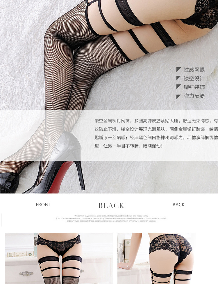 Overall, sexy hollow-out studded stockings are a charming and sexy fashion accessory that can increase your confidence and charm, making you full of charm in any occasion. Whether as a fashion accessory or a part of sex life, these stockings are an essential choice for you.