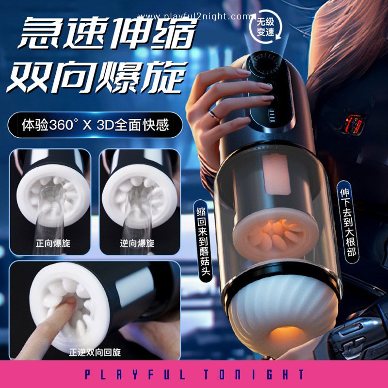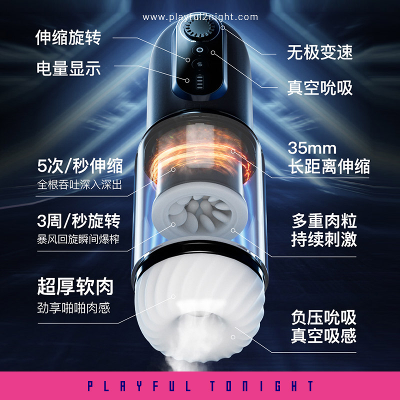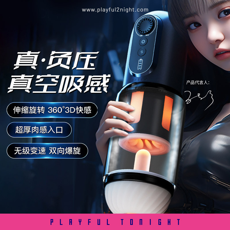 Envelop yourself in sweet vibrations and set course for a powerful climax. Godwin Thrust & Rotation Suction Masturbator features a unique boost mode encased in a sophisticated dark grey body.