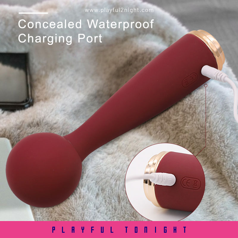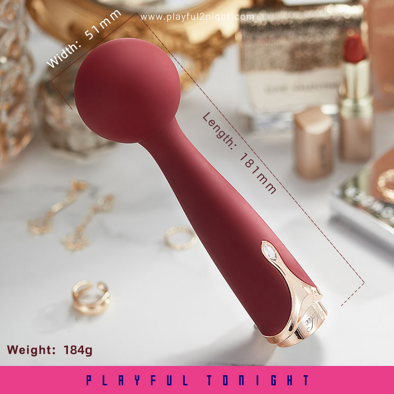 The mini wand vibrator features a sleek and elegant design and comes with a luxurious storage pouch.