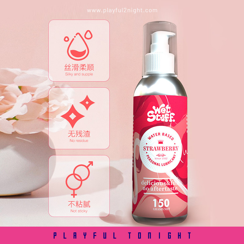 Wet Stuff lubricant is not a contraceptive and does not contain spermicide. If irritation occurs, stop using the product. If irritation continues, consult your doctor. It is non-staining and washes out with cold water and has a pleasant, sweet taste without any sugar.