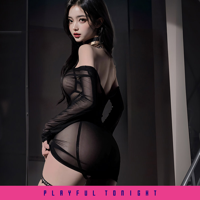 Crafted with sheer fabric, daringly revealing, showcasing perfect body curves while leaving endless imagination. Form-fitting design accentuating your curves, captivating attention wherever you go. Bondage-inspired straps wrapping around your body, adding dominance and seduction to your look. From neck to thigh, straps intertwine, paired with sheer outerwear! Temptation from within and without. Additionally, accessorized with tie-belt and outerwear, adding more style and personalized flair to your look! Experience the ultimate allure and passion brought by our tantalizing ensemble. Boldly embrace the seductive charm of sheer temptation and unleash your inner goddess!