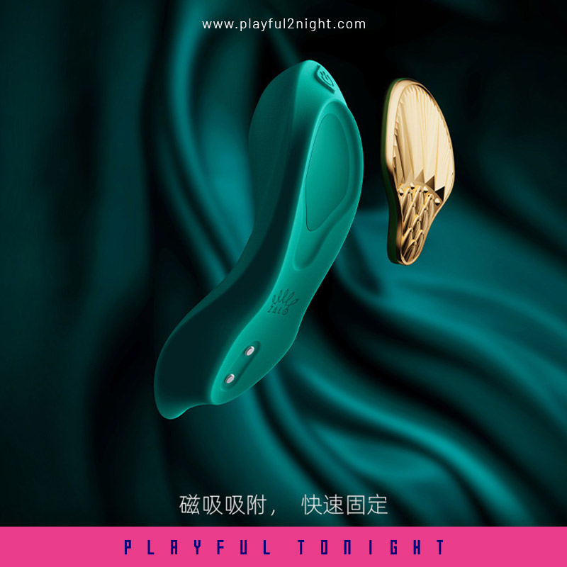 A beautiful, gleaming golden shield-shaped magnet secures the vibrator in place when it is placed outside of the panty to be worn discreetly underneath clothing during a sexy date or while playing anywhere with a partner.