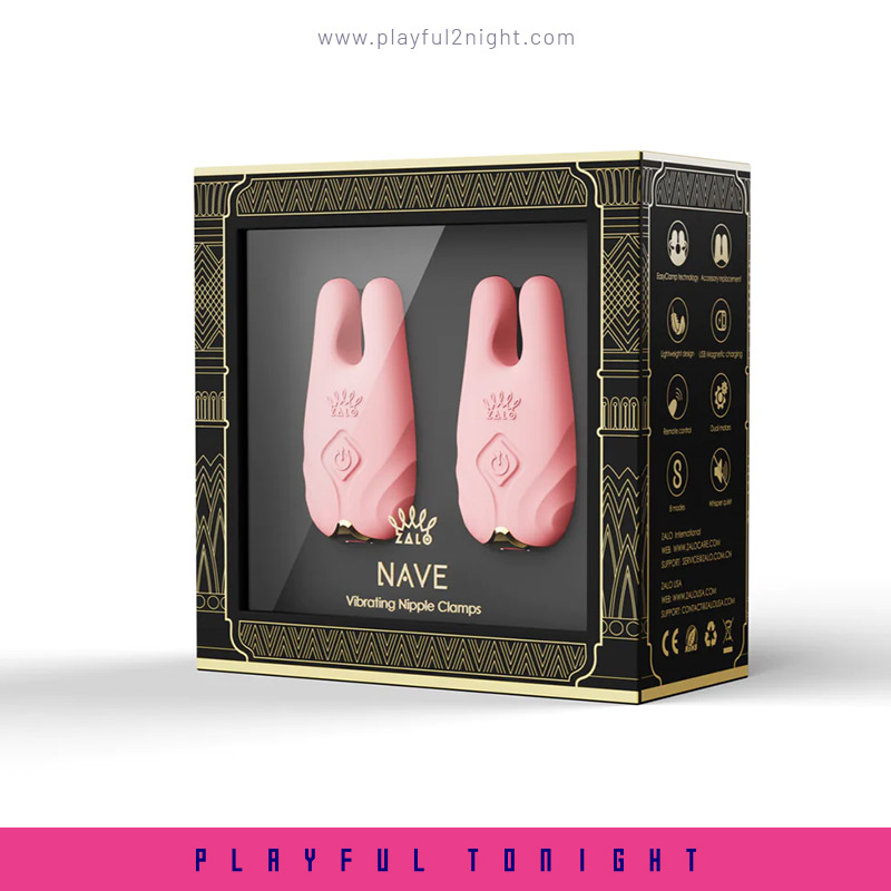 - In the box: 2 Nave nipple clamps, 4 silicone attachments, remote control, USB charging cable, satin storage pouch, instructions manual